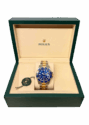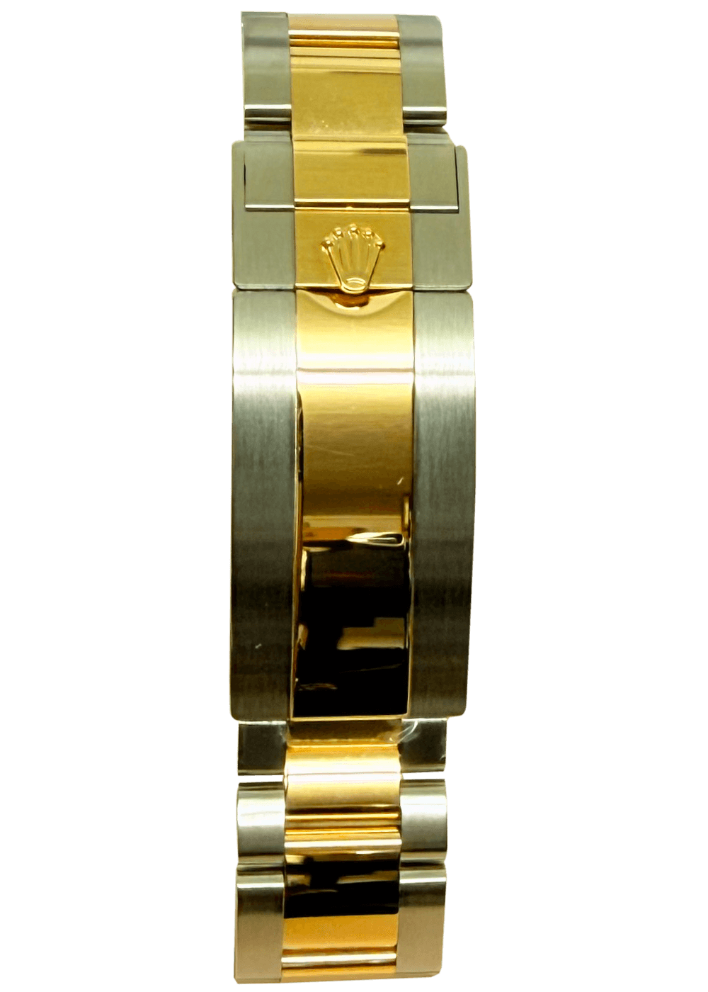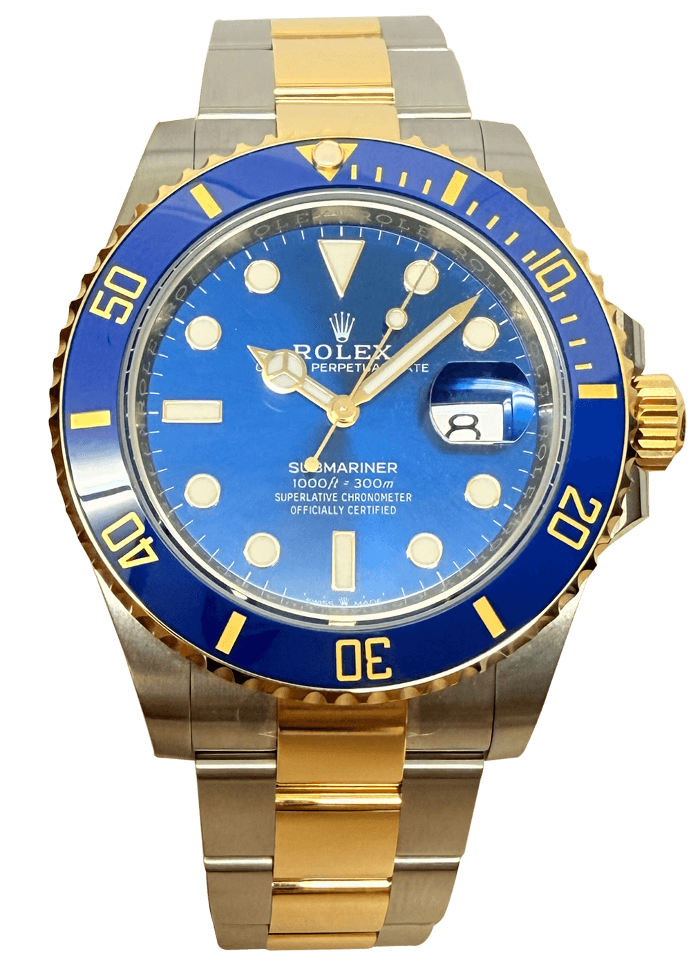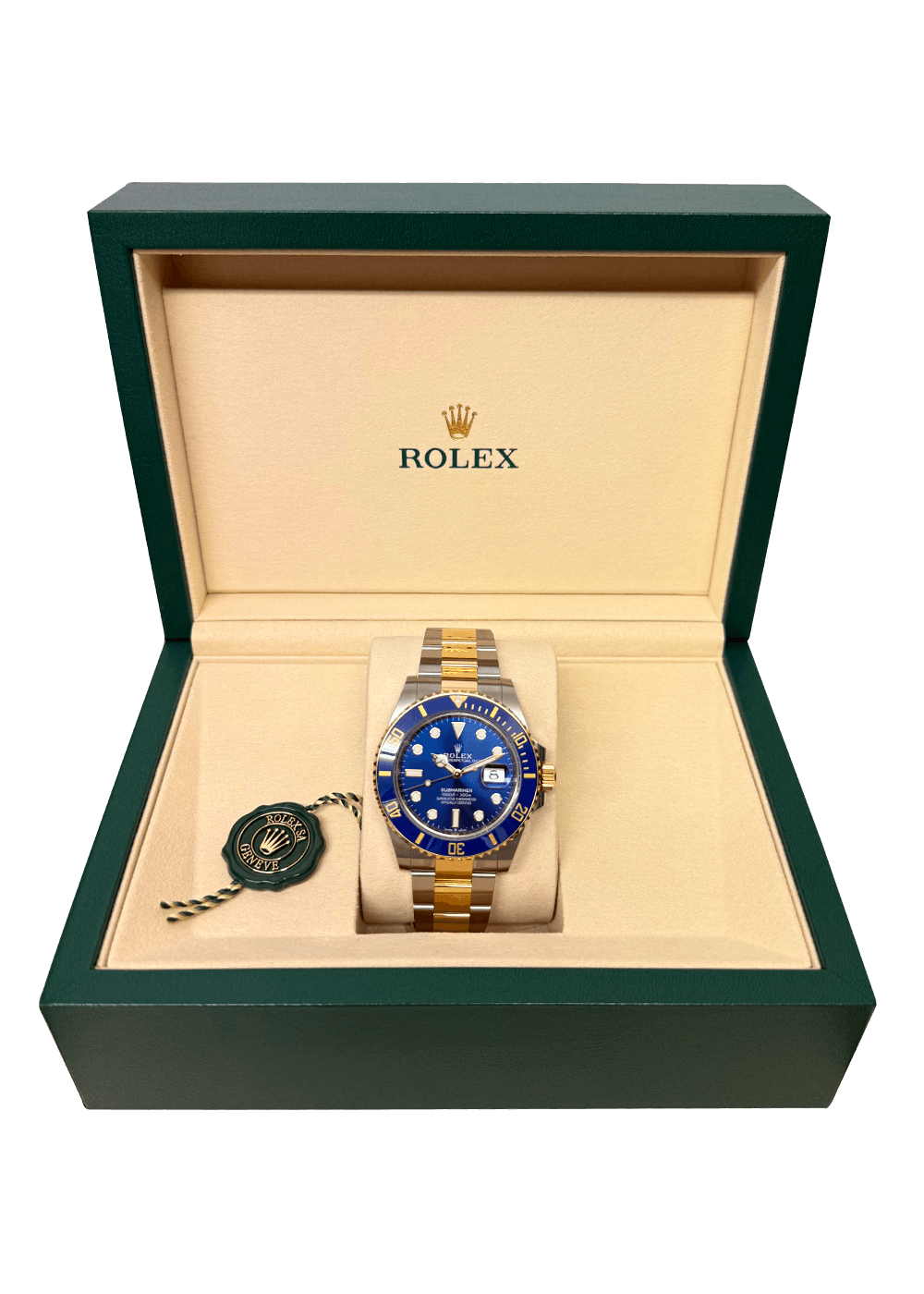Ein Spiel aus Licht und Ozeanblau: Die Rolex Submariner fasziniert durch ihr ikonisches Sunray-Zifferblatt, das je nach Lichteinfall seine Tiefe verändert. Die Kombination aus kühlem Oystersteel und strahlendem 18 Karat Gelbgold macht sie zum ultimativen Statement-Piece – sportlich genug für das Abenteuer, elegant genug für den Abend.