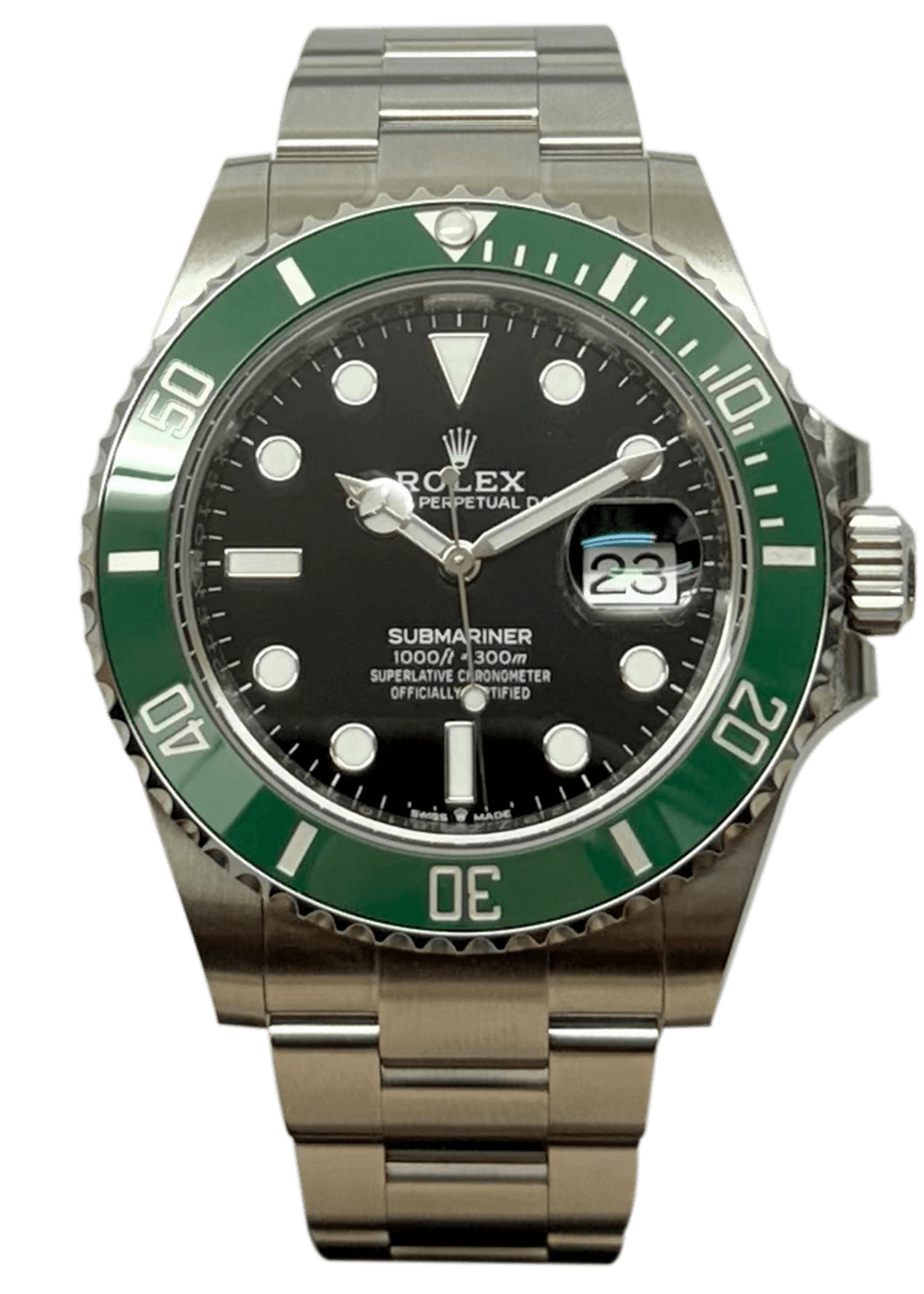 Diese Submariner Date ist die moderne Evolution einer Legende und besticht durch ihre markante, grüne Keramiklünette, die ihr in Fankreisen einen berühmten froschgrünen Spitznamen eingebracht hat. In Kombination mit dem tiefschwarzen Zifferblatt und dem robusten Oystersteel-Gehäuse bietet sie einen aufregenden farblichen Akzent, ohne ihre Wurzeln als klassische Taucheruhr zu verlieren.