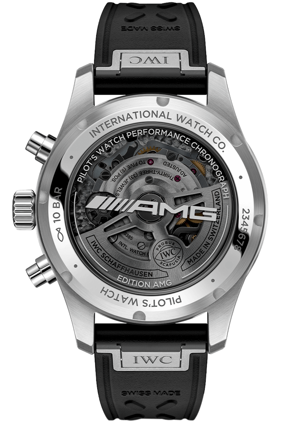 Titan weist das höchste Festigkeits-Dichte-Verhältnis aller Metalle auf und wird deshalb im Automobilbau häufig zur Herstellung von Komponenten für Hochleistungsmotoren verwendet. Die Titan Grad 5-Legierung, die beim Gehäuse der Pilot’s Watch Performance Chronograph 41 zum Einsatz kommt, ist rund 45 Prozent leichter als Stahl und bemerkenswert fest.