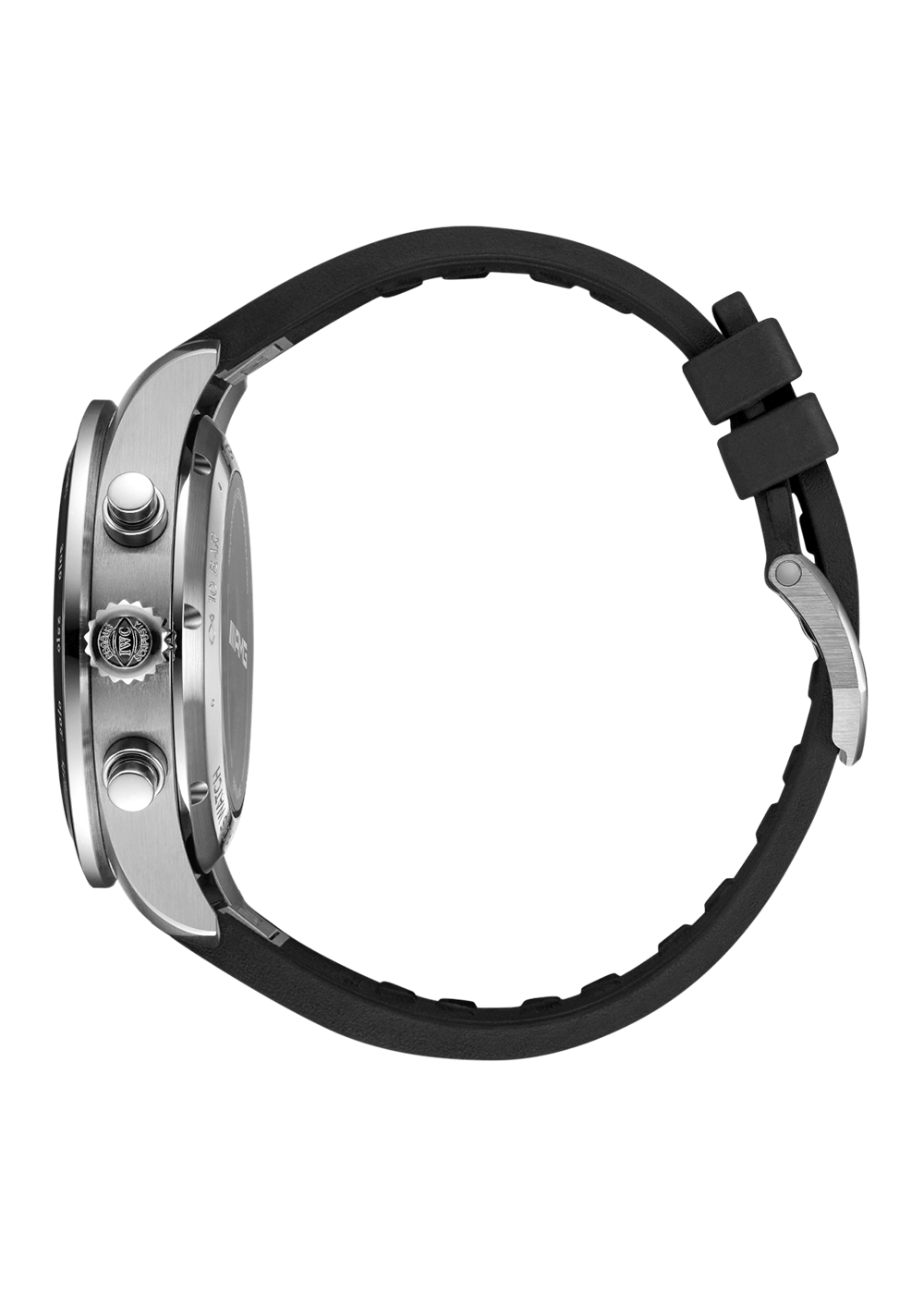 Bei diesem Modell sind Gehäuse, Krone und Drücker aus robustem und leichtem Titan gefertigt. IWC leistete 1980 Pionierarbeit bei der Einführung dieses schwer zu bearbeitenden Metalls in der Uhrenindustrie, als das Unternehmen die erste Armbanduhr mit einem Gehäuse und Armband aus Titan vorstellte.