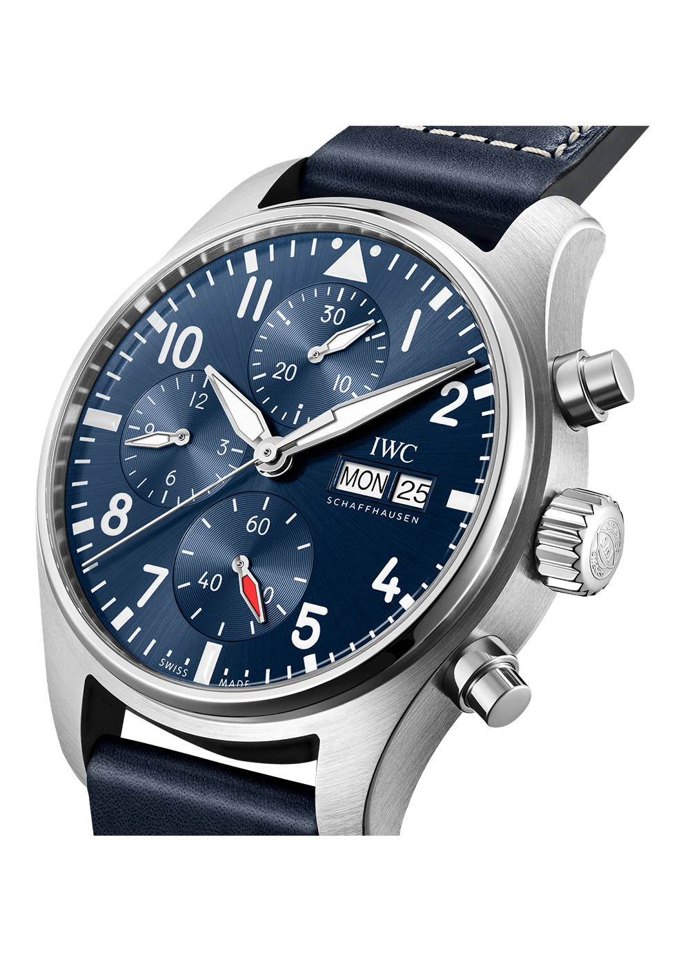 Die im 2021 vorgestellte Fliegeruhr verfügt über ein Edelstahlgehäuse im kompakten Durchmesser von 41 Millimetern und ist entweder mit einem blauen oder grünen Zifferblatt erhältlich. Um die Kompetenz der Marke bei der Entwicklung eigener Uhrwerke zu unterstreichen, wird es vom IWC Manufakturkaliber 69385 angetrieben, das durch einen Saphirglasboden sichtbar ist. Mit dem neuen EasXCHANGE- System und einer Auswahl an Armbändern aus Kalbsleder, Kautschuk oder Edelstahl ist die neue Pilot’s Watch Chronograph 41 die ultimative Sportuhr.