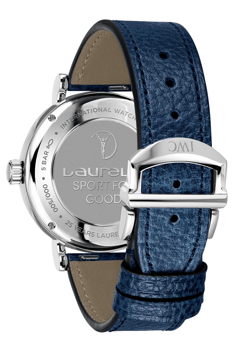 Mit der Portofino Automatic Pointer Date Laureus setzt IWC Schaffhausen seine Tradition von Sondereditionen zur Unterstützung der Arbeit von Laureus Sport for Good fort. IWC ist seit 2005 Global Partner der Stiftung und hat bei zahlreichen Gelegenheiten mit Laureus zusammengearbeitet. Die auf 500 Stück limitierte Sonderedition verfügt über ein Edelstahlgehäuse mit einem angenehm zu tragenden Durchmesser von 39 Millimetern und ein Zifferblatt in der charakteristischen Laureus-Farbe Blau.