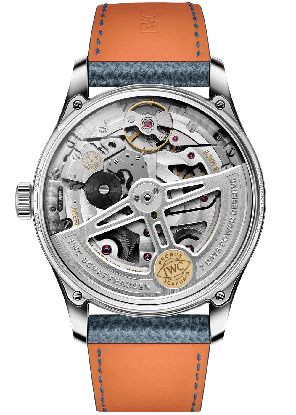 Angetrieben wird die Portugieser Automatic 42 vom IWC-Manufakturkaliber 52011, das aufwendig mit kreisförmigen Genfer Streifen veredelt ist. Der Pellaton-Aufzug ist mit nahezu verschleissfreien Zirkonoxid-Keramikkomponenten verstärkt und baut in zwei Federhäusern eine Gangreserve von sieben Tagen (168 Stunden) auf.