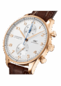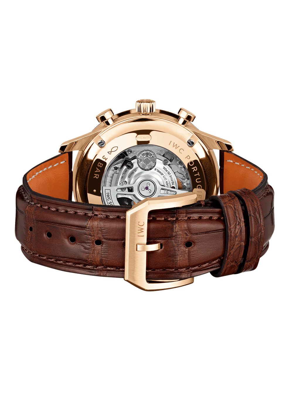 Die Portugieser Chronograph ist seit 1998 das begehrteste Modell der Portugieser-Familie. Damals war sie die erste Portugieser-Uhr, von der man Zeit nicht nur ablesen, sondern mit deren Hilfe man sie auch stoppen konnte. Die moderate Gehäusegrösse von 40,9 Millimetern macht den Chronographen auch für schmale Handgelenke attraktiv. Alles ist harmonisch in das klare Zifferblatt mit umlaufender Präzisionsskala integriert: die vertieften Totalisatoren, die aufgesetzten arabischen Zahlen und die ideal proportionierten Feuille-Zeiger für Stunden und Minuten.