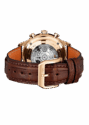Sehr edel wirkt der Zeitmesser im warm anmutenden 18-Karat-Rotgold-Gehäuse mit dunkelbraunem Alligatorlederarmband. Beim argentéfarbenen Zifferblatt setzen die gebläuten Zeiger für die Messzeiten farbige Akzente.