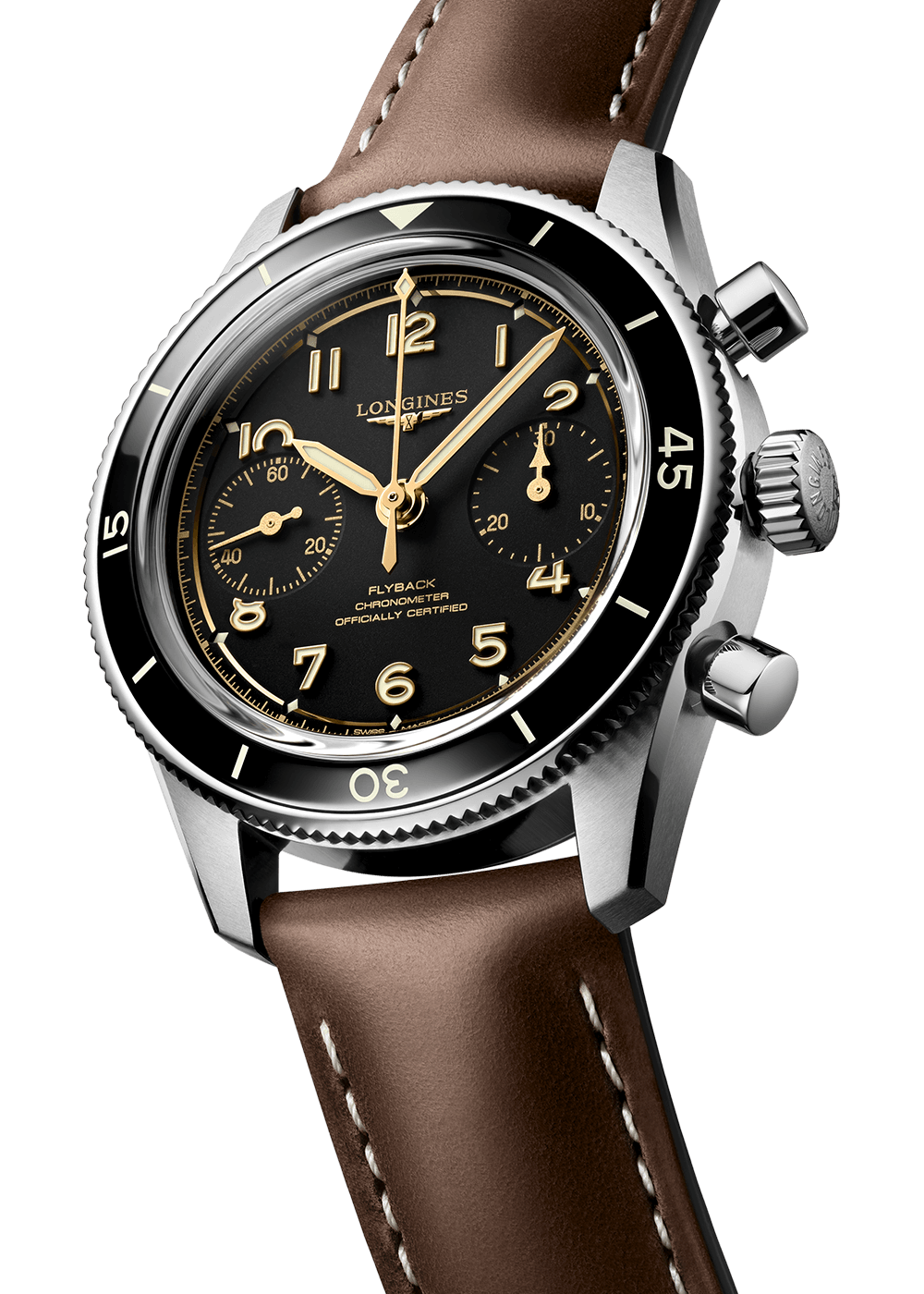 Die LONGINES Spirit Pilot Flyback Kollektion verkörpert den unermüdlichen Antrieb der Marke zur Innovation. Dieser Chronograph mit Flyback-Funktion unterstreicht die wegweisende Expertise von LONGINES auf diesem Gebiet. Die Marke mit der geflügelten Sanduhr lancierte Anfang der 1930er Jahre das erstes Modell mit Flyback-Funktion. Sie erhielt am 16. Juni 1936 das Patent für diese Technologie – ein weltweites Novum. Die Flyback-Komplikation wurde als bahnbrechendes Instrument für Piloten entwickelt. Sie ermöglicht die Messung aufeinanderfolgender Flugabschnitte und steigert so die Effizienz der Navigation erheblich. Die Präzision der LONGINES Spirit Pilot Flyback wird durch ein exklusives LONGINES Kaliber gewährleistet, das mit einer Unruhspiralfeder aus Silizium ausgestattet ist und unempfindlich gegenüber Magnetfeldern bleibt. Dieses mechanische Uhrwerk mit Handaufzug wurde von der COSC offiziell als Chronometer zertifiziert.