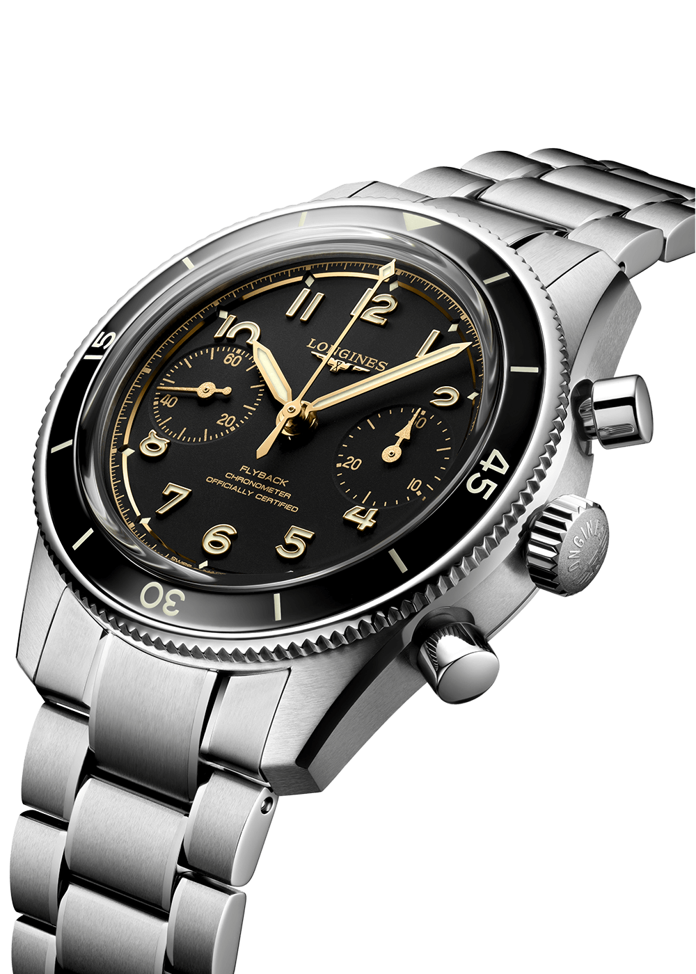 Die LONGINES Spirit Pilot Flyback Kollektion verkörpert den unermüdlichen Antrieb der Marke zur Innovation. Dieser Chronograph mit Flyback-Funktion unterstreicht die wegweisende Expertise von LONGINES auf diesem Gebiet. Die Marke mit der geflügelten Sanduhr lancierte Anfang der 1930er Jahre das erstes Modell mit Flyback-Funktion. Sie erhielt am 16. Juni 1936 das Patent für diese Technologie – ein weltweites Novum. Die Flyback-Komplikation wurde als bahnbrechendes Instrument für Piloten entwickelt. Sie ermöglicht die Messung aufeinanderfolgender Flugabschnitte und steigert so die Effizienz der Navigation erheblich. Die Präzision der LONGINES Spirit Pilot Flyback wird durch ein exklusives LONGINES Kaliber gewährleistet, das mit einer Unruhspiralfeder aus Silizium ausgestattet ist und unempfindlich gegenüber Magnetfeldern bleibt. Dieses mechanische Uhrwerk mit Handaufzug wurde von der COSC offiziell als Chronometer zertifiziert.
