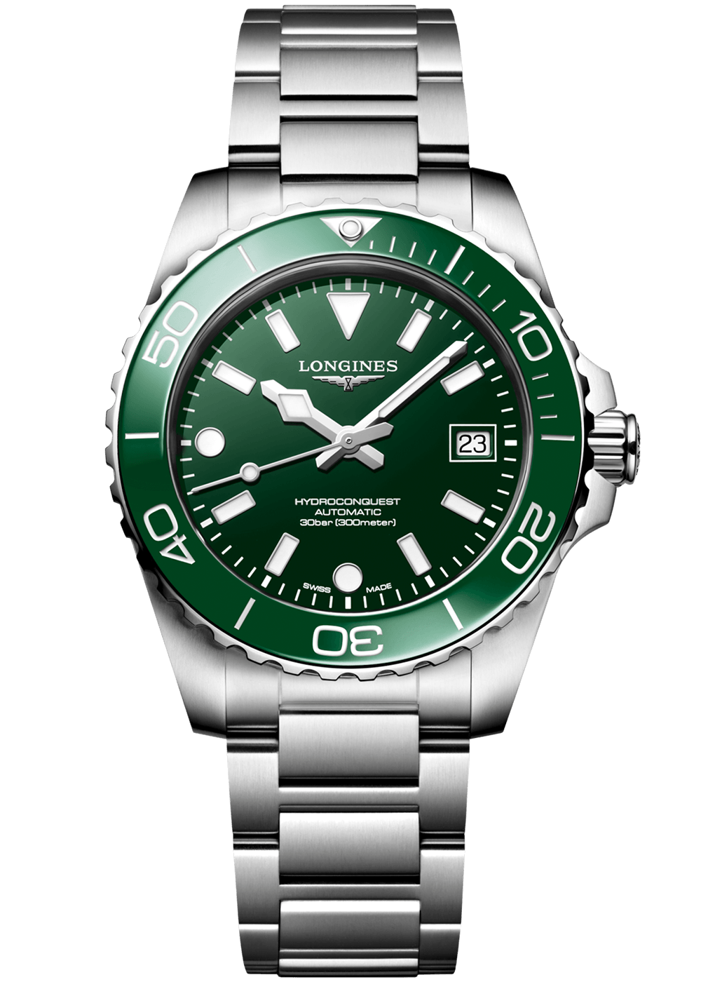 Die HYDROCONQUEST Kollektion vereint moderne Ästhetik mit nachweislicher Leistung. Angetrieben von einem exklusiven LONGINES Kaliber, wasserdicht bis zu 30 bar (300 m), mit einseitig drehbarer Lünette, verschraubter Krone und verschraubtem Gehäuseboden.