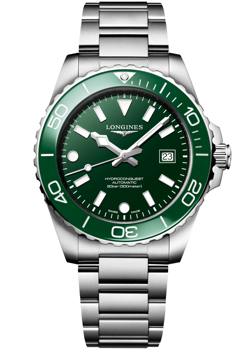 Die HYDROCONQUEST Kollektion vereint moderne Ästhetik mit nachweislicher Leistung. Angetrieben von einem exklusiven LONGINES Kaliber, wasserdicht bis zu 30 bar (300 m), mit einseitig drehbarer Lünette, verschraubter Krone und verschraubtem Gehäuseboden.
