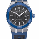 Die bronzene Version wird mit zwei #Armbändern geliefert, einem aus dunkelblauem Vintage-Leder mit dem M-Logo des Unternehmens und einem zweiten aus dunkelblauem Kautschuk mit der Prägung “Maurice Lacroix”.