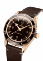 Das 41-mm-Gehäuse und die Lünette sind aus 9K-Bronzegold gefertigt, während der braune Keramik-Lünettenring eine Taucherskala in Vintage-Super-LumiNova enthält. Auf dem bronzenen Zifferblatt finden Sie versenkte Stundenmarkierungen und offene Ziffern mit Super-LumiNova sowie PVD-bronzegoldfarbene Zeiger.