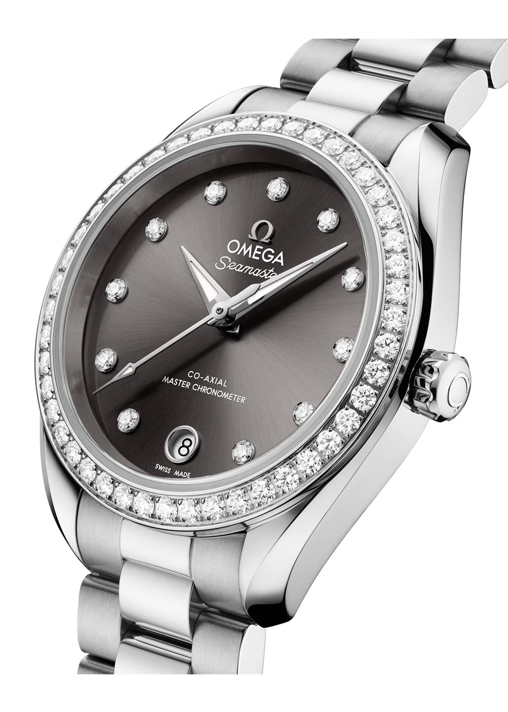 Die Seamaster Aqua Terra ist eine Hommage an OMEGAs großes maritimes Erbe. Seine zarten Proportionen hat das schlanke 30-mm-Gehäuse dieser Uhr dem innovativen OMEGA Co-Axial Master Chronometer Kaliber 8751 zu verdanken, das vom Eidgenössischen Institut für Metrologie (METAS) nach den höchsten Standards der Branche zertifiziert wurde.