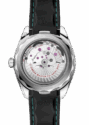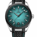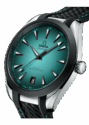 Das faszinierende, türkis lackierte Zifferblatt, inspiriert von der Farbe des Meeres, ist mit einem schwarzen Farbverlauf akzentuiert und verfügt über facettierte Zeiger und Stundenindizes mit grauer PVD-Beschichtung und weißer Super-LumiNova.