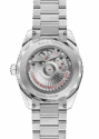 Die Seamaster Aqua Terra ist eine Hommage an OMEGAs grosses maritimes Erbe. Dieses Modell verfügt über ein symmetrisches Gehäuse und eine Krone aus vollständig poliertem Edelstahl und ein Wellendekor auf dem Gehäuseboden.