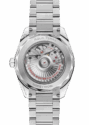 Die Seamaster Aqua Terra ist eine Hommage an OMEGAs grosses maritimes Erbe. Dieses Modell verfügt über ein symmetrisches Gehäuse und eine Krone aus vollständig poliertem Edelstahl und ein Wellendekor auf dem Gehäuseboden.