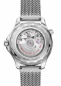 Das 42-mm-Gehäuse aus Edelstahl verfügt über einen schwarzen, mit Oxalsäure eloxierten Lünettenring aus Aluminium, der eine Tauchskala aus weißer Super-LumiNova aufweist.