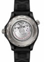 Das Gehäuse dieses 43,5-mm-Modells aus schwarzer Keramik und Titan Grade 5 besticht durch eine schwarze Keramiklünette mit einer Tauchskala aus weissem Email. Das Zifferblatt besteht ebenfalls aus gebürsteter schwarzer Keramik [ZrO2] und verfügt ferner über eine Lasergravur, um ein Wellenrelief zu erzeugen.