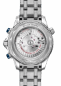 Dieser 44-mm-Chronograph aus Edelstahl besticht durch eine polierte blaue Keramiklünette mit einer Tauchskala aus weissem Email. Die Drücker und das Zifferblatt bestehen ebenfalls aus polierter blauer Keramik. Ausserdem ist das Zifferblatt mit lasergravierten Wellen und einem Datumsfenster bei 6 Uhr versehen.