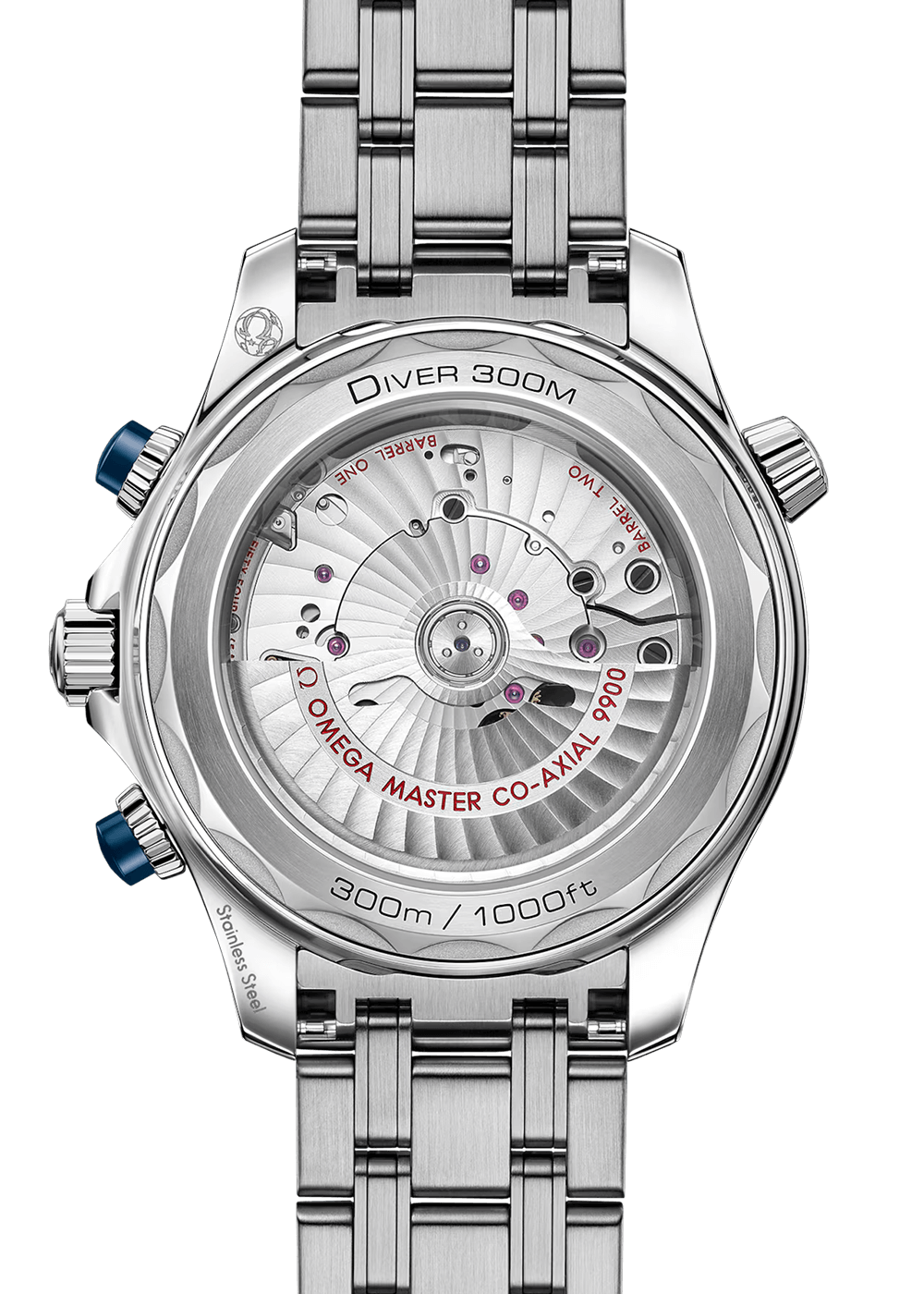 Angetrieben wird die Uhr mit Edelstahlarmband vom OMEGA Master Chronometer-Kaliber 9900, das durch das Saphirglas des Gehäusebodens mit gewelltem Rand bewundert werden kann.