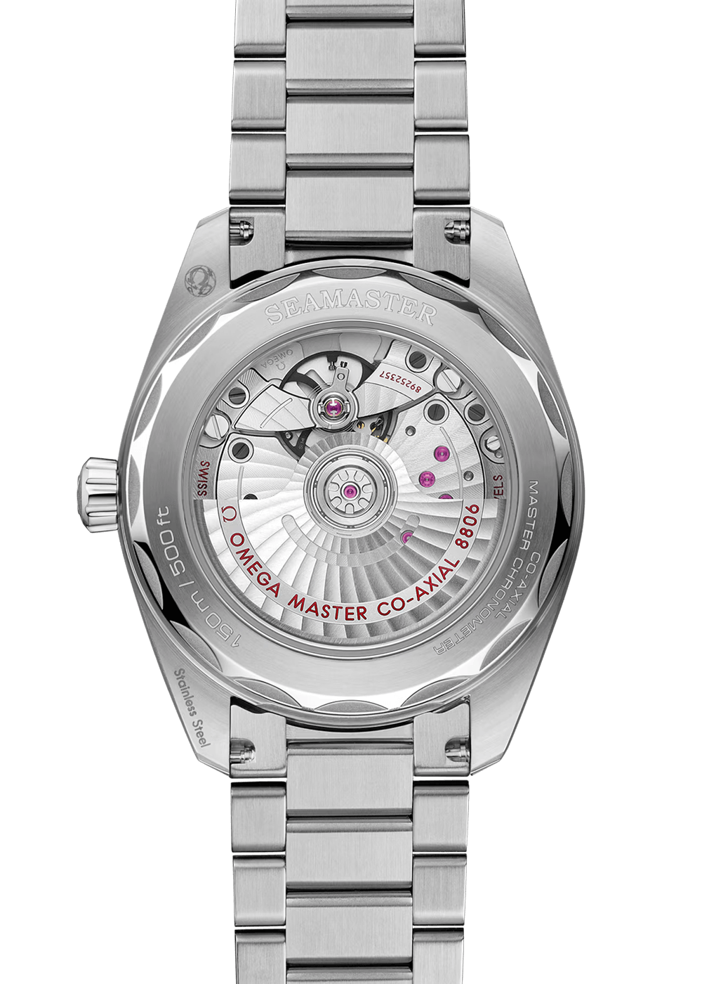 Auch setzt die Uhr das antimagnetische Erbe der Railmaster fort – dank des Co-Axial Master Chronometer Kalibers 8804. Das Uhrwerk ist bis zu 15.000 Gauß magnetresistent und kann durch das transparente Saphirglas auf dem Gehäuseboden bewundert werden.