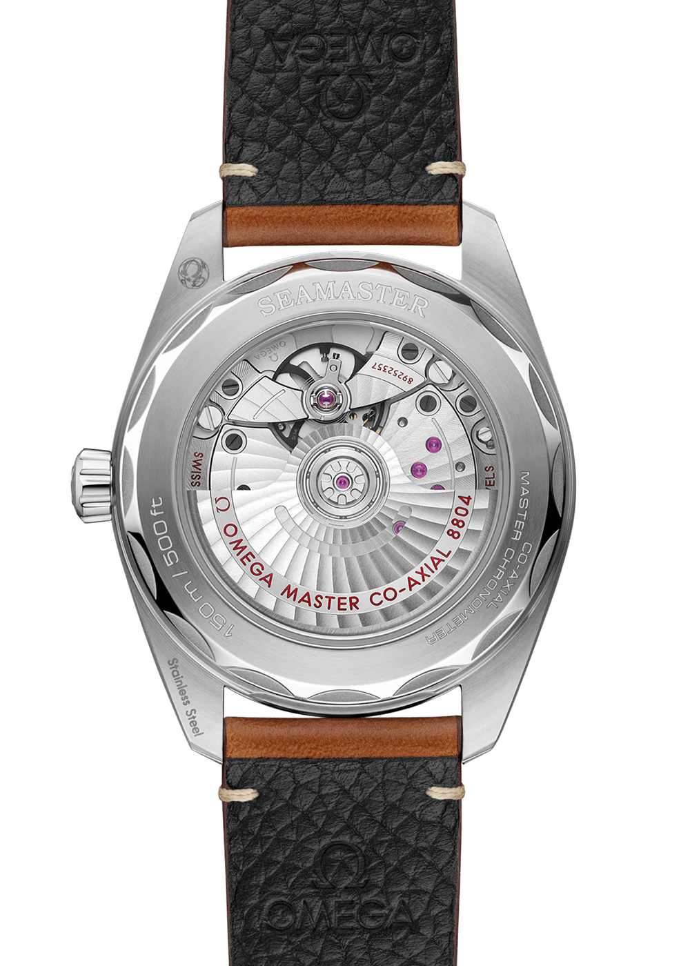 Auch setzt die Uhr das antimagnetische Erbe der Railmaster fort – dank des Co-Axial Master Chronometer Kalibers 8804. Das Uhrwerk ist bis zu 15.000 Gauß magnetresistent und kann durch das transparente Saphirglas auf dem Gehäuseboden bewundert werden.