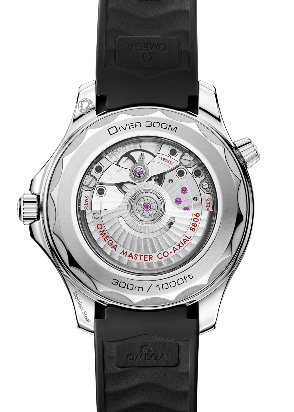 Das 42-mm-Gehäuse aus Edelstahl verfügt über einen schwarzen, mit Oxalsäure eloxierten Lünettenring aus Aluminium, der eine Tauchskala aus weißer Super-LumiNova aufweist.