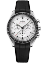Das Markenzeichen “Speedmaster” ist in leuchtendem Rot geschrieben, während die rote Spitze des Sekundenzeigers auffällig von dem reinen weissen Hintergrund abhebt. Diese Designelemente sind eine Hommage an das Schutzgehäuse der ALASKA I und die roten Streifen auf den Raumanzügen der Kommandanten. Die Armbandschliesse, die für zusätzlichen Komfort sorgt, präsentiert ein poliertes OMEGA-Logo auf der satinierten Abdeckung. Das exquisit verarbeitete Armband wurde auf eine Breite von 15 mm erweitert und verfügt über zwei polierte Drücker in einer ovalen Form.