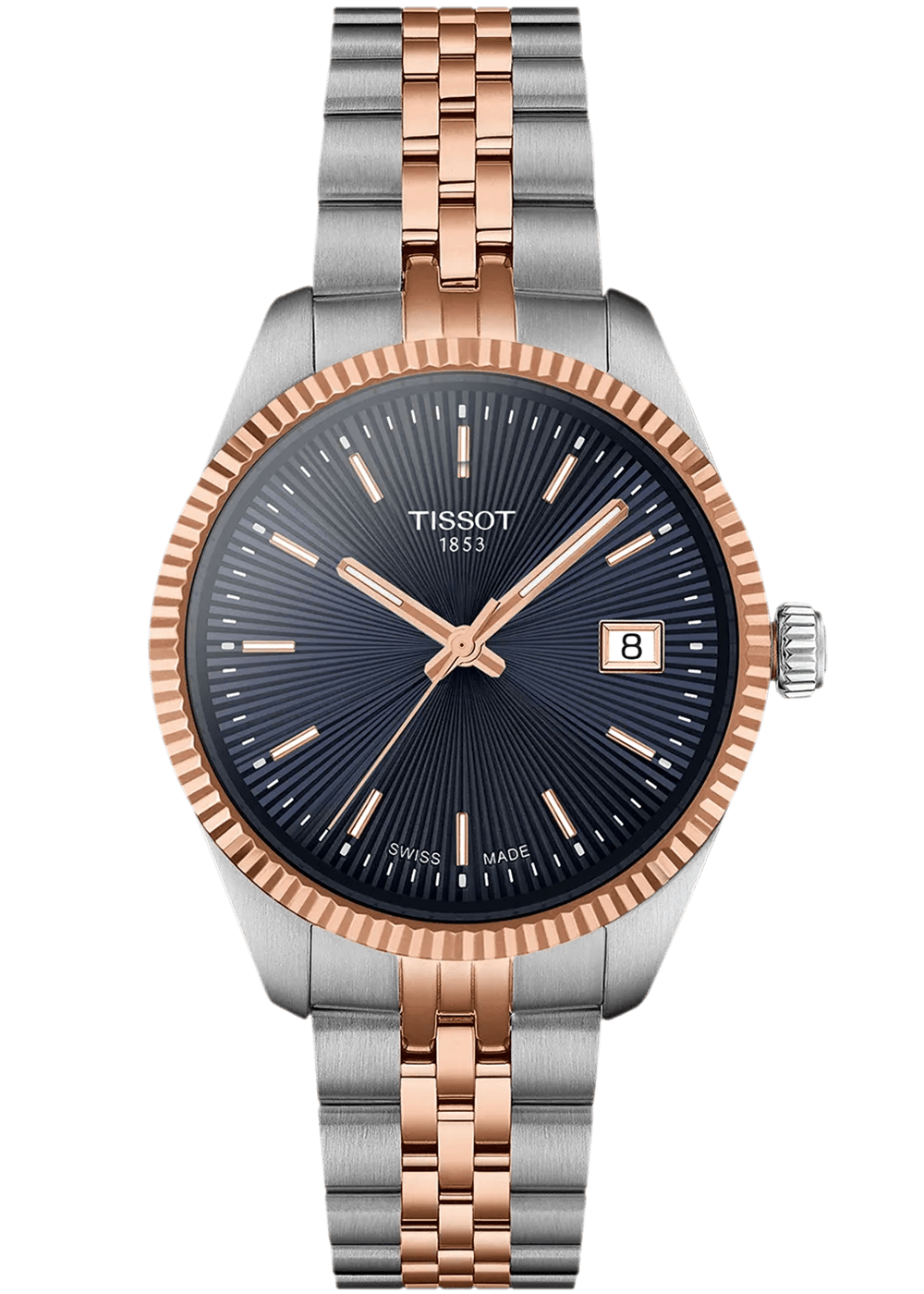 Die Tissot Ballade 34mm wurde für besondere Momente designt, um Ihrem Stil in solchen das ganz besondere Etwas zu verleihen. Ihr traditionelles, guillochiertes Zifferblatt mit Sonnenstrahl-Effekt reflektiert das Licht auf wundervolle Weise und verleiht der Uhr Tiefe und Eleganz. Die kannelierte Lünette steht als raffinierte Verzierung für traditionelle Uhrmacherkunst. Ein dank Schnellwechselsystem werkzeuglos austauschbares Armband bietet maximale Vielseitigkeit und ermöglicht es Ihnen, Ihren Look unkompliziert zu verändern.